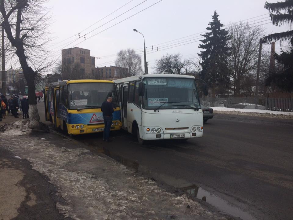 Транспортні засоби зіткнулися на вулиці Ковельській. Маршрутки зазнали незначних механічних пошкоджень. Інформації про постраждалих наразі немає.