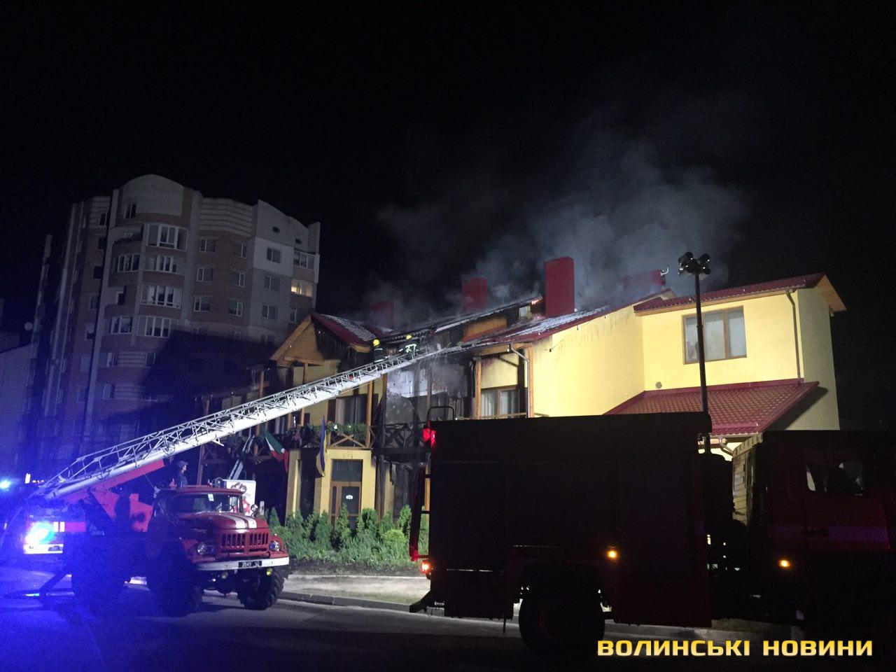 Як повідомляє власкор Інформаційного агентства Волинські Новини, спочатку загорівся перший поверх, де розташоване приміщення ресторану.