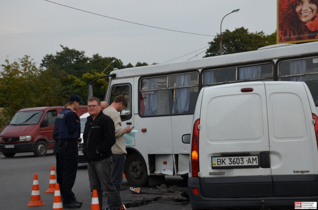 Так, «Рено Кенго» зіткнувся з маршруткою №23, внаслідок чого легковик зазнав механічних ушкоджень. На місці працюють поліцейські.