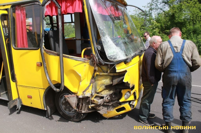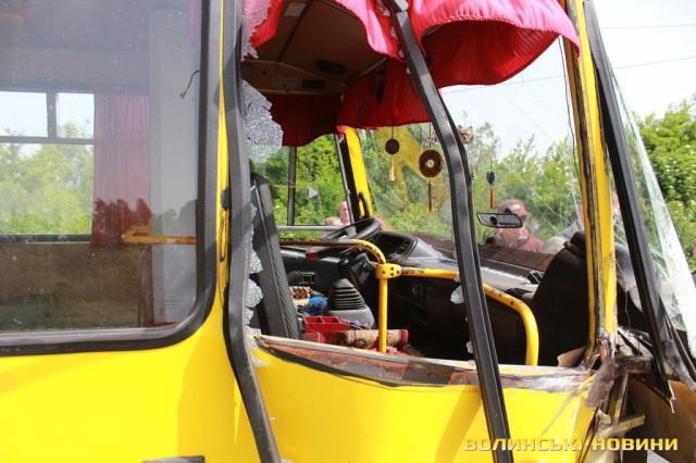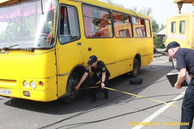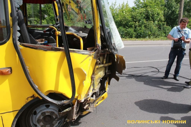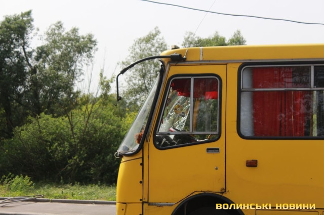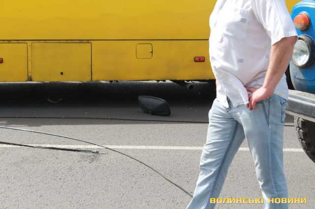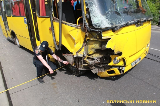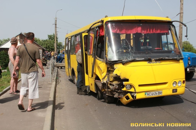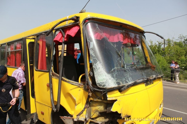 Водій автобусу №107 «Луцьк – Муравище» розповів, що рухався від центру міста, як зненацька на великій швидкості на зустрічну смугу вискочило авто темного кольору. Аби уникнути удару «лоб в лоб», водій маршрутки був змушений повернути праворуч, у результаті чого збив електроопору