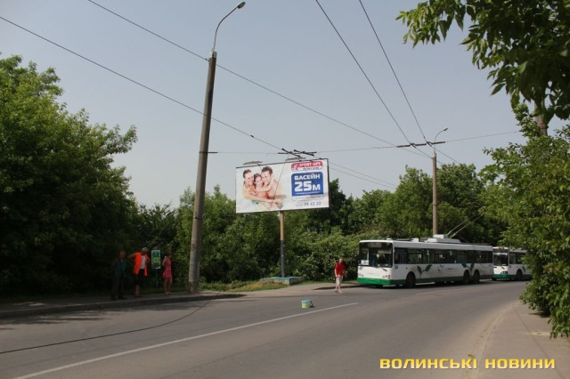 Водій автобуса «Богдан», намагаючись уникнути лобового зіткнення з легковиком, збив електроопору. Інцидент трапився на вулиці Гнідавській, за мостом через річку Стир.