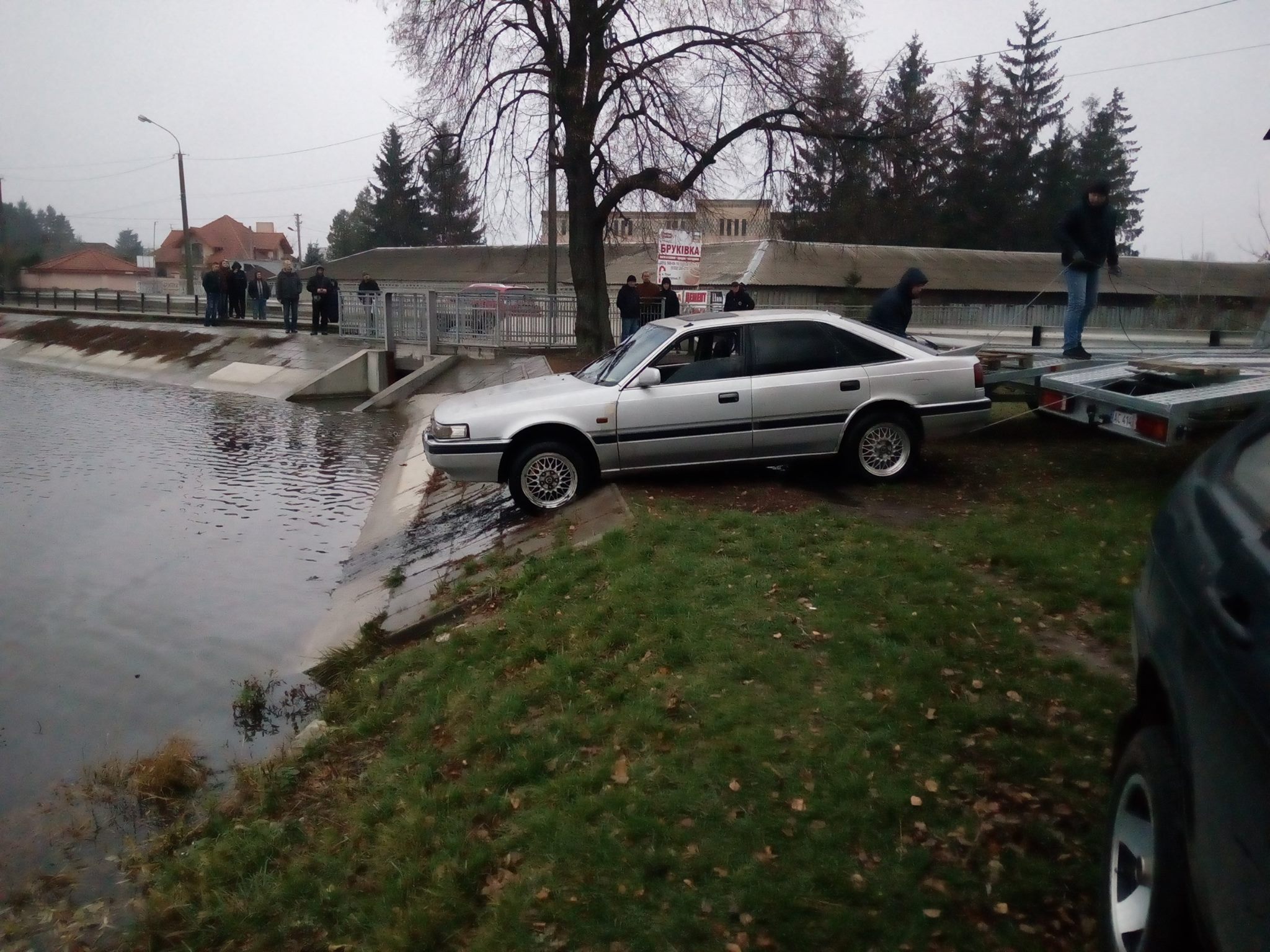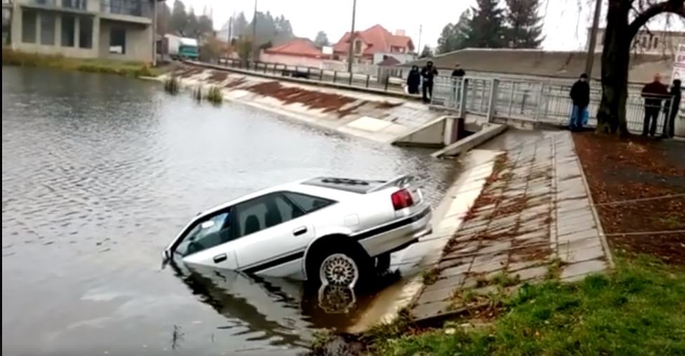 Як би авто було на євробляхах,то вже був би десяток коментів на зразок: нетверезий водій втопив авто,дістали вже бляхарі.А так все нормально.