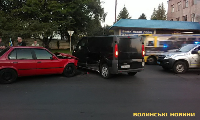 У Луцьку на Конякіна «БМВ» влетіла у бік мікроавтобуса. Фото