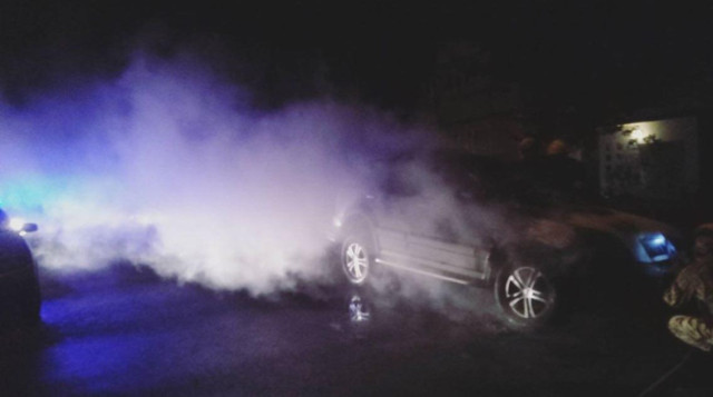 Причини займання кросовера наразі невідомі. Автомобіль забрали, на його місці залишилося згарище.
