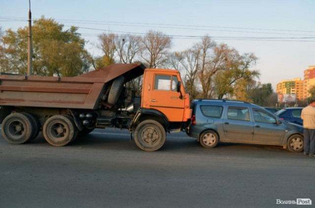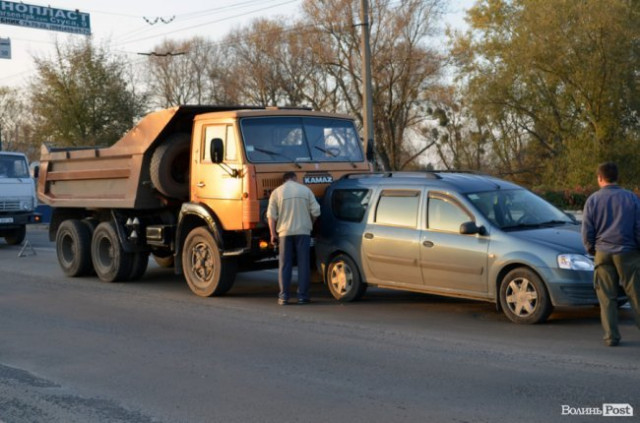 У Луцьку на мосту, що на вулиці Ковельській, КамАЗ в’їхав у легковик Renault.