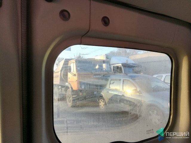 Фургон та вантажівка пригальмували на червоне світло, проте КАМАЗ не зупинився одразу, а в'їхав у Renault. Щоправда, зіткнення незначне, відтак автомобіль отримав невеликі вм'ятини.