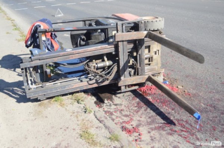 На проїжджу частину дороги випали підйомник, а разом з ним і близько трьох-чотирьох десятків коробок з малиною.