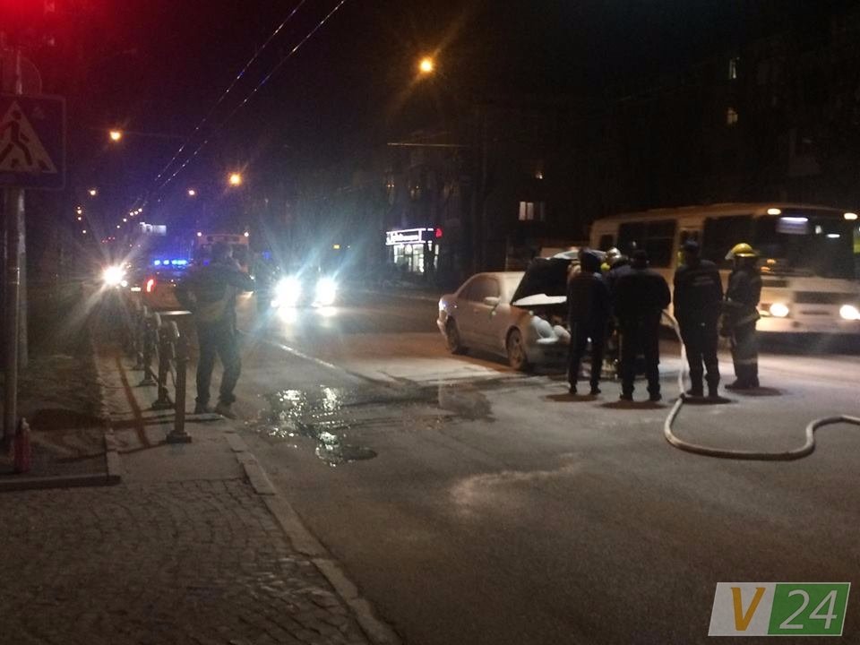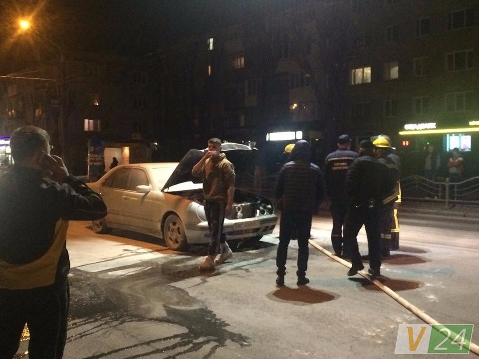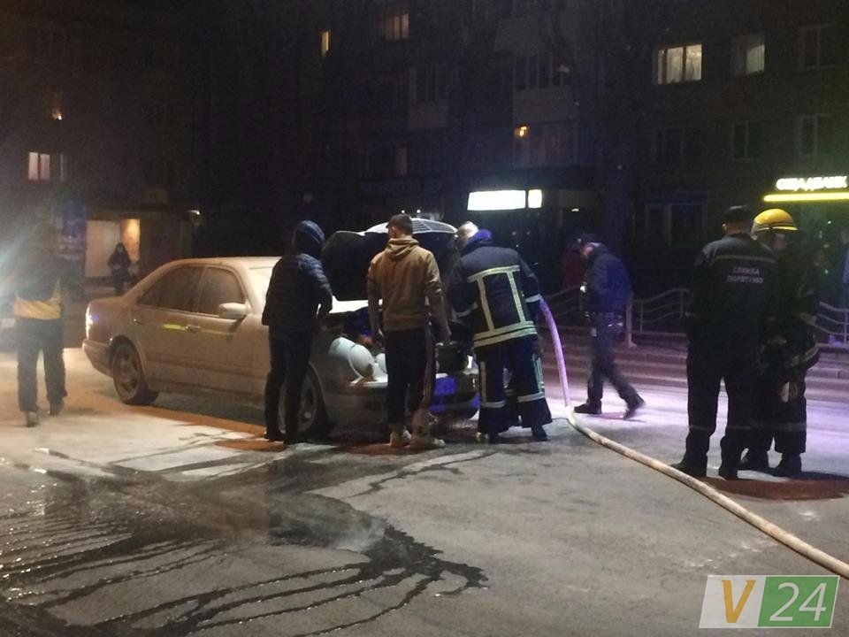 Автомобіль "Мерседес" загальмував на пішохідному переході, з-під капота повалив густий дим та з'явилося полум'я.