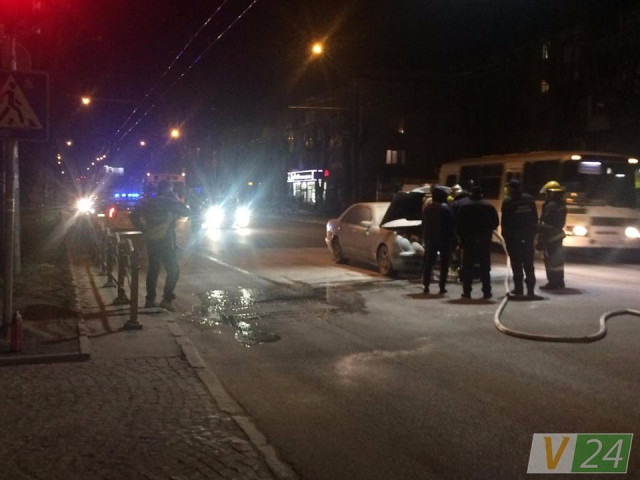 Поблизу приміщення «Західінкомбанку» на проспекті Перемоги в Луцьку спалахнула машина.