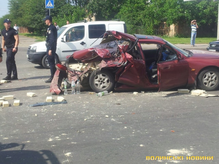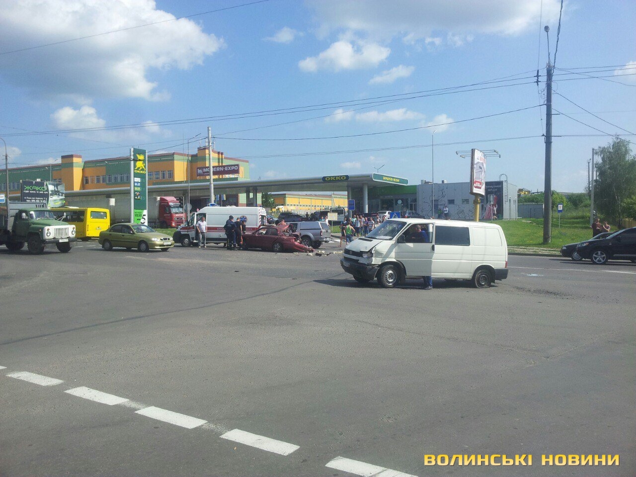 Як повідомила у коментарі виданню речниця Патрульної поліції Луцька Ольга Бузулук, водій автомобіля Volkswagen T4 здійснив наїзд на автомобіль Mazda, який повертав ліворуч. Внаслідок зіткнення постраждала пасажирка автомобіля Mazda. Її госпіталізувала карета швидкої медичної допомоги. До слова, розсипану по асфальту цеглу перевозили саме в легковику.