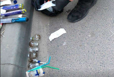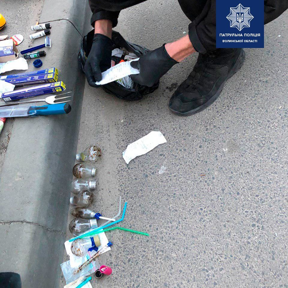 Інспектори виявили двох осіб, які почали чинити їм непокору та поводились неадекватно. В одного з чоловіків помітили річ, ззовні схожу на пістолет, також знайшли поліетиленовий пакет з кристалічною речовиною блакитного кольору, схожою на наркотичну, та кілька паперових згортків з зелено-коричневою речовиною, схожою на наркотичну.