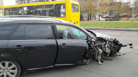 Водій Toyota, аби уникнути зіткнення, скерував авто праворуч та зіштовхнувся з бордюром. Від удару легковик відкинуло в бетонний стовп.