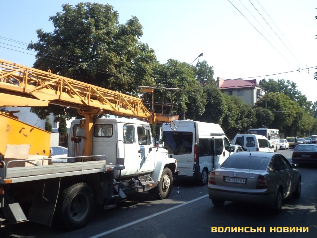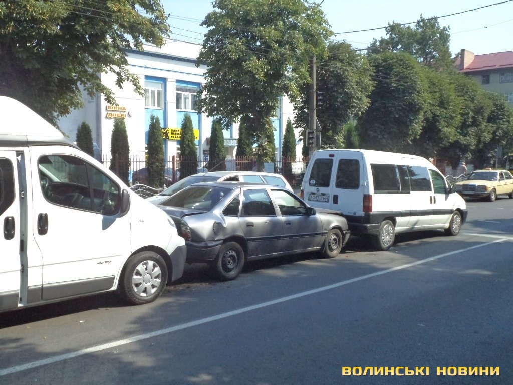 Так, зі слів очевидців, близько 10 години «етажерка» «Луцьксвітло» протаранила «стрілою» мікроавтобус Reno Trafic. Своєю чергою, бус «вписався» в OpelVectra, який, за принципом доміно, не оминув Fiat Scudo.