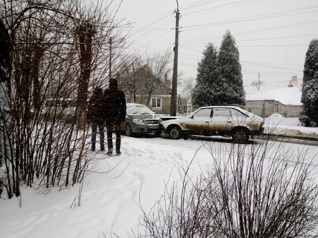 На вулиці Б.Хмельницького правоохоронці на службовому автомобілі надали допомогу водіям швидкої та мікроавтобуса, які пробуксовували, бо не могли виїхати під гірку.