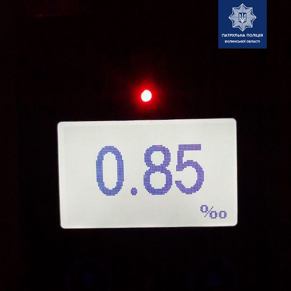 Під час спілкування з водієм охоронці порядку виявили ознаки алкогольного сп’яніння. Результат огляду на стан сп’яніння – 0,85 проміле.