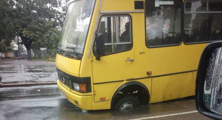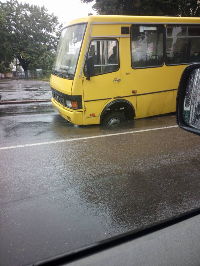 «На проспекті Волі маршрутка колесом провалилася під асфальт», – пише Роман.