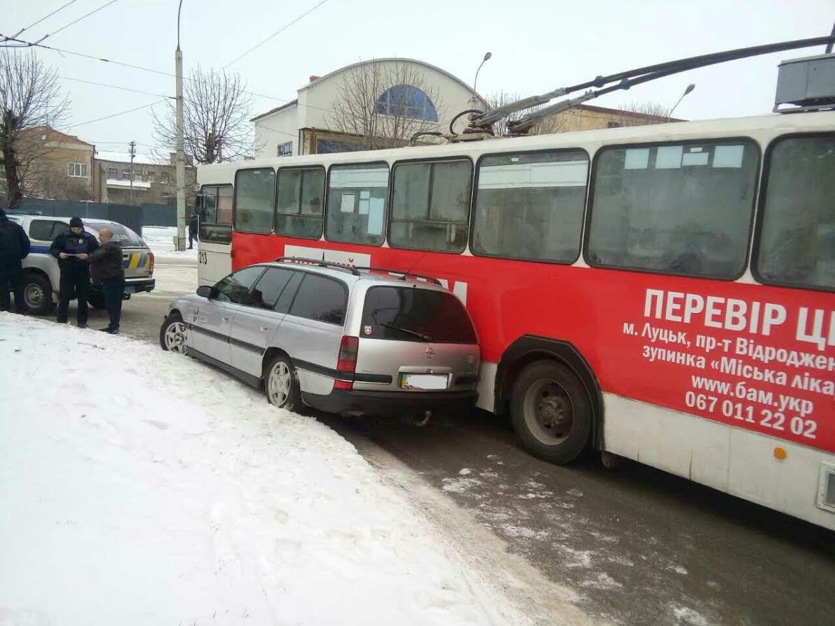 Дорожньо-транспортна пригода за участю тролейбуса та легковика трапилася сьогодні, 10 січня, у Луцьку на вулиці Василя Мойсея.