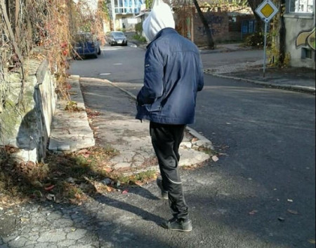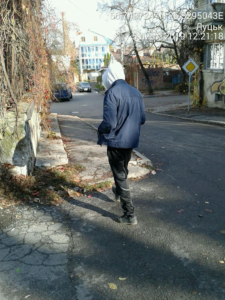 Фото з нагрудної камери зафіксувало лише його вигляд ззаду, бо при затримані камеру порушник збив.«Закладки» - це пакунки з наркотиками, які ховають у клумбах, під'їздах і просто на тротуарах.
