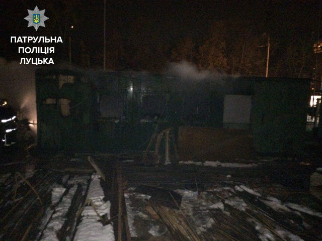 У Луцьку посеред ночі горів будівельний вагончик. Фото