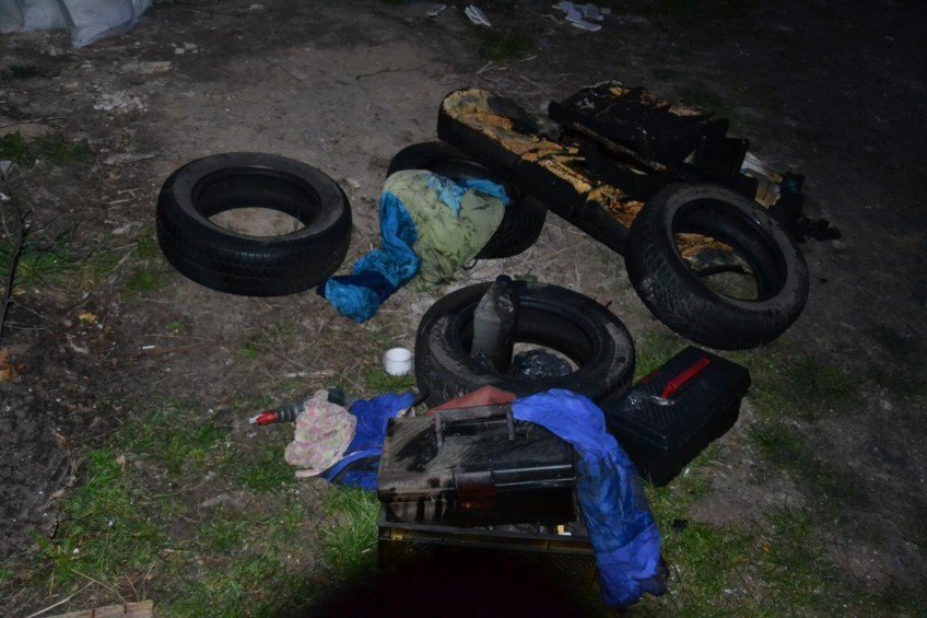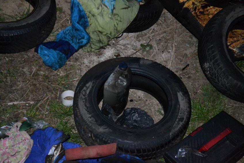На місці вилучили пляшку із бензином, які підклали під колеса автомобіля, адже одна із них так і не загорілася. Транспортний засіб стояв біля офісу туристичного агентства «Патріот», яке очолює Климчук.