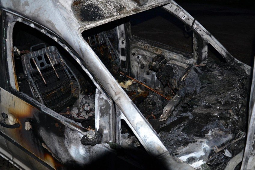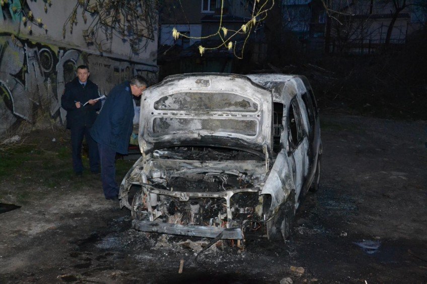 Близько 4 ранку в центрі Луцька поблизу міської ради спалили автомобіль «Фольксваген» члена виконкому міської ради та активіста «Самооборони Волині» Богдана Климчука.