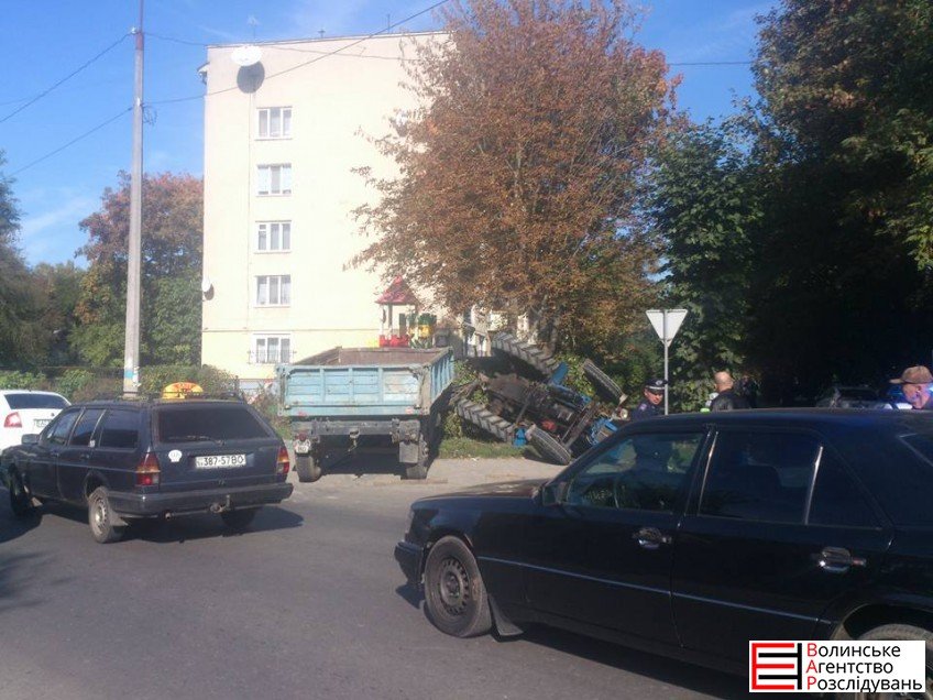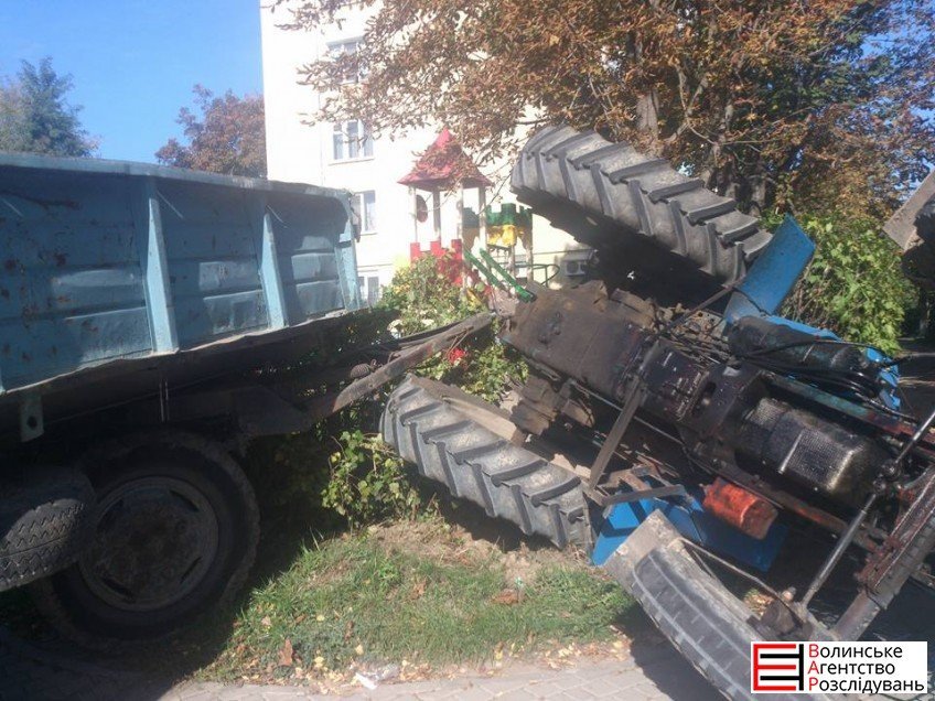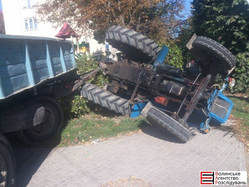 У Луцьку трактор перевернувся поблизу дитмайданчика. ФОТО