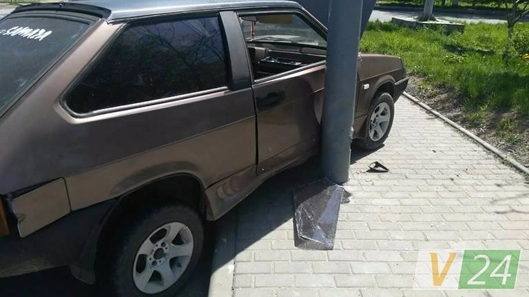Водій легковика Шевроле не пропустив ВАЗівську «вісімку», в результаті чого легковик вискочив на тротуар, де зачепив стовп.