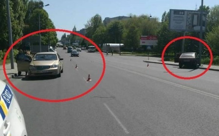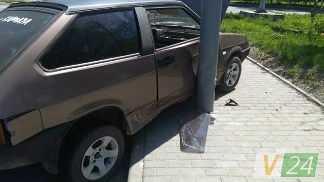 Відтак, Шевроле вдарився передом в бік «вісімки» і та вилетіла праворуч на тротуар. Там ще й «зустріла» стовп, вдарившись в нього боком.