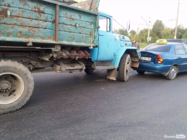 Вантажний автомобіль в'їхав у задню частину таксі марки Daewoo Lanos.