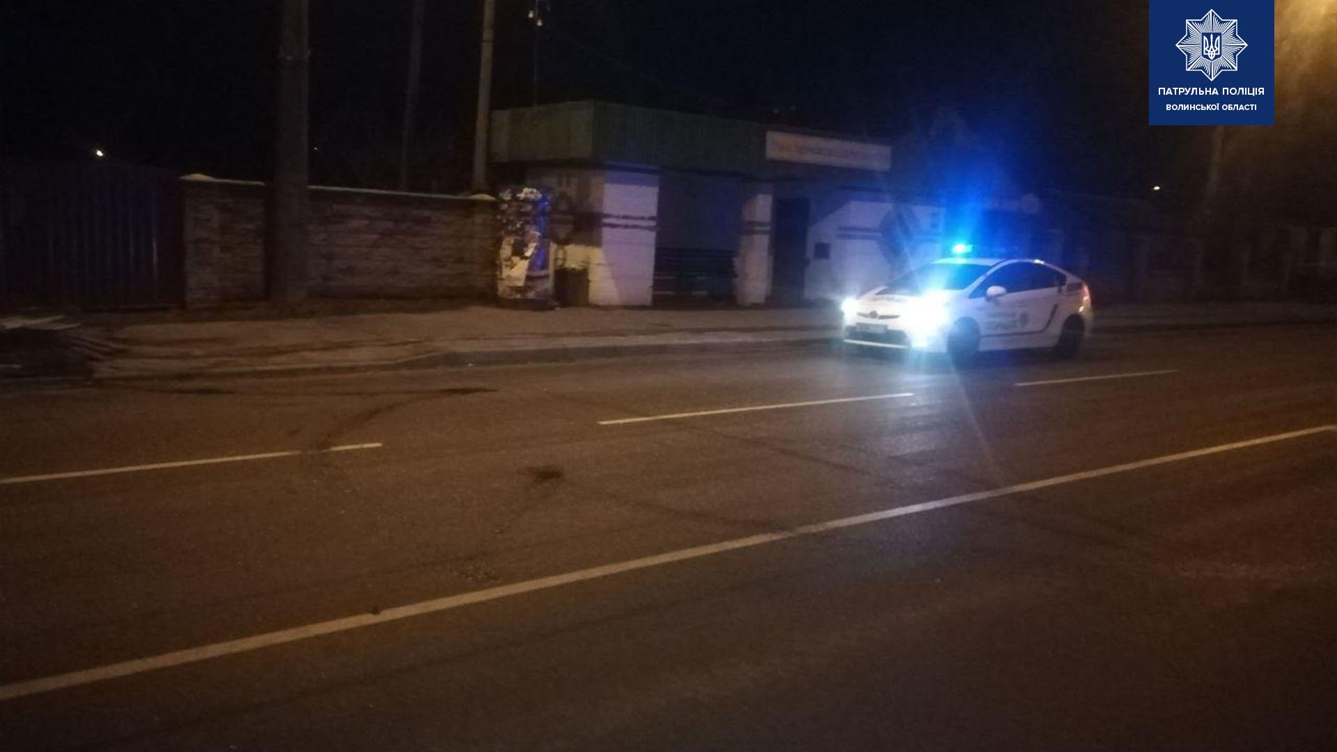 Повідомлення про ДТП патрульні отримали близько 1-ї години ночі. Невідомий чоловік за кермом легковика на вулиці Гнідавській наїхав на зупинку громадського транспорту і втік, повідомили у пресслужбі волинських патрульних.