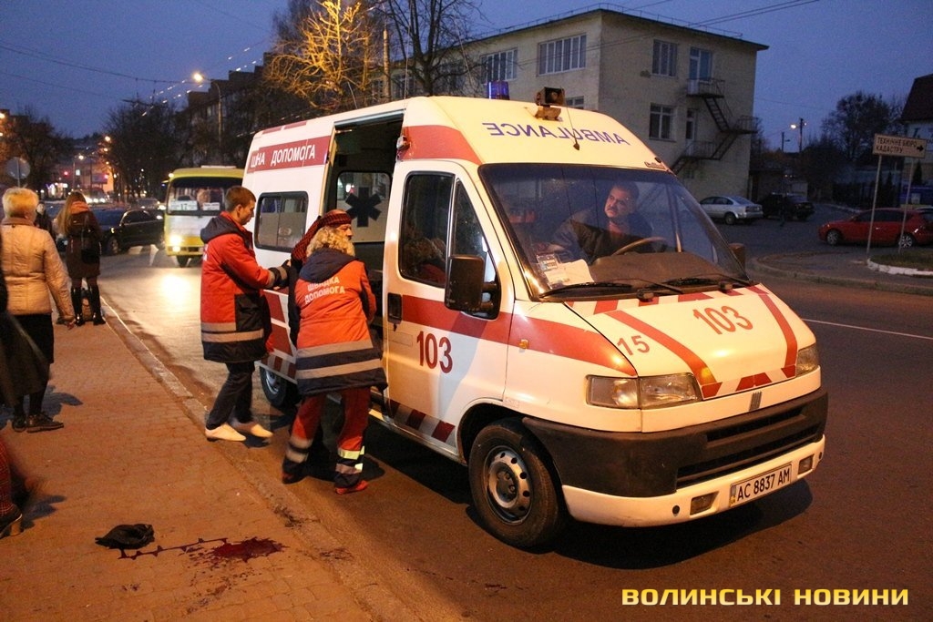 «Я поміряла пульс – дуже слабкий і швидко почала приймати міри - побігла на офіс, бо поряд працюю, взяла перекис водню, стерильний бинт, промила рану і наклала пов'язку. Аби зупинити кров, довелось скористатися звичайним шарфом», - розповідає лучанка Вікторія Семенюк.Швидка допомога приїхала приблизно через 5 хвилин.