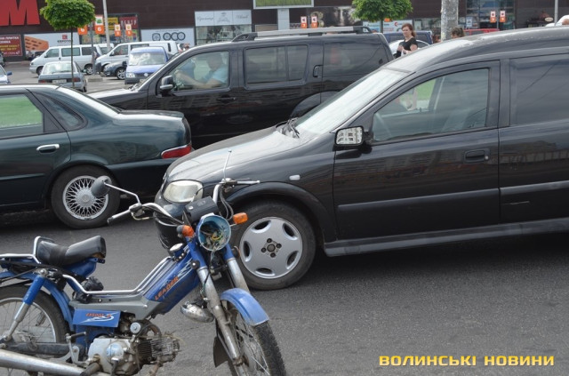Учасниками дорожньо-транспортної пригоди стали автомобіль Opel та мопед. У авто викручене дзеркало заднього виду, а в мопеда розбита передня фара.