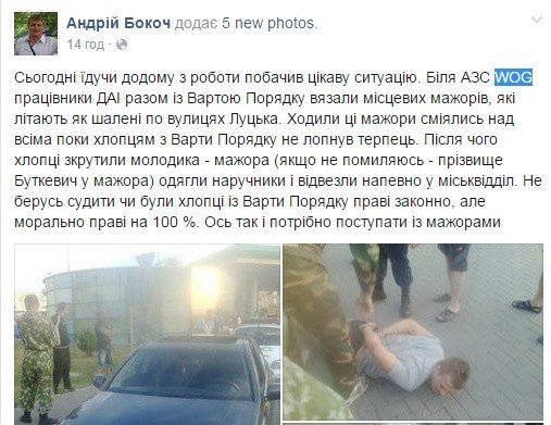 Зі слів заступника голови правління «Варти порядку» Олександра Рубана, про те, що вулицями Луцька на шаленій швидкості роз’їжджає автомобіль, патрулю громадського формування повідомила міліція. У авто перебувало двоє чоловіків. Молодики порушували Правила дорожнього руху, зокрема проїжджали на червоне світло та підрізали бус. На вимоги міліції зупинитися хлопці не реагували.