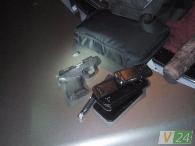 Правоохоронці застосували кайданки, після чого знайшли у автомобілі чоловіка стартовий пістолет перероблений під травматичний, биту, а також багато мобільних телефонів.