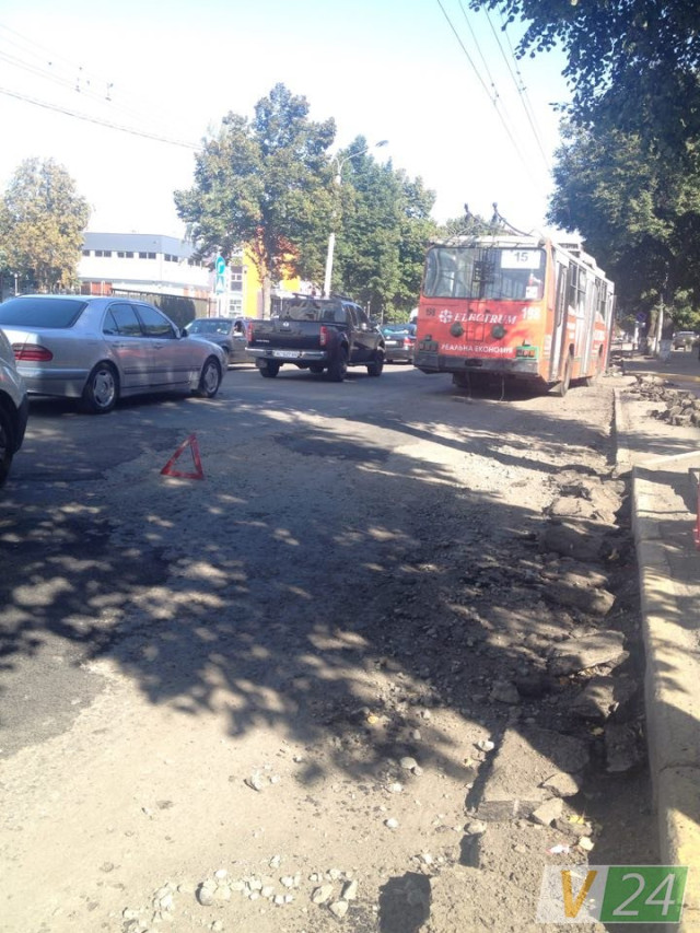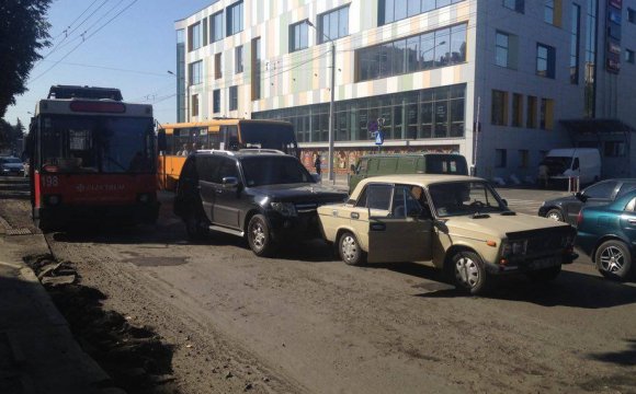 Згідно з повідомленням видання, "Жигулі" кремового кольору "поцілувало" чорний джип "Міцубісі", якого в зад стукнув тролейбус 15а.