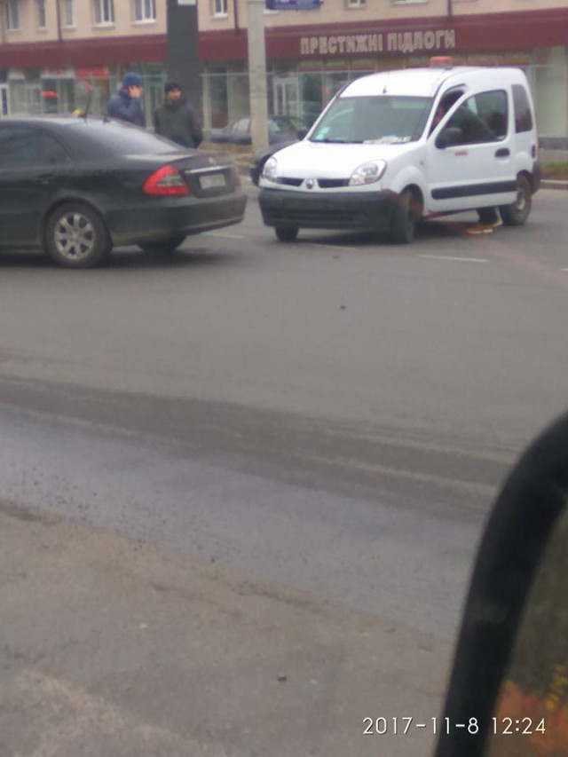 Так, близько 12 години перед пішохідним переходом на Рівненській автомобіль «Renault Kangoo» служби «Морячок-таксі» врізався у «Mercedes Benz E-class», виїзджаючи з повороту.