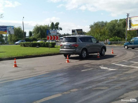 Відомо, що позашляховик Infinity та вантажівка Mercedes рухалися кільцем в одному напрямку. Причин зіткнення наразі становлюються. Автомобілі зазнали незначних пошкоджень.
