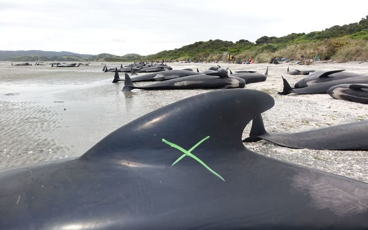 Ще близько 200 чорних дельфінів-гринд викинулися на сушу в районі мису Фэруэлл на півночі Південного острова у Новій Зеландії.