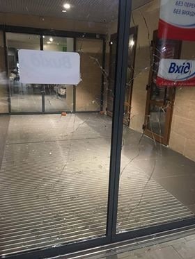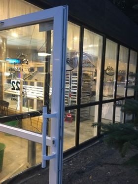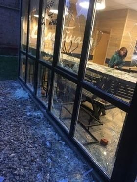 18 вікон у кафе “Сімейна пекарня” розтрощили у Нововолинську. Побили також двері супермаркету АТБ.