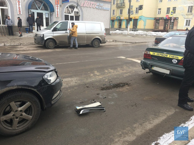 Зі слів очевидців, водій Volkswagen не вибрав безпечної дистанції та вчасно не загальмував. Як наслідок – машина протаранила бампер навчального автомобіля Daewoо, за кермом якого перебувала учениця разом із інструктором.