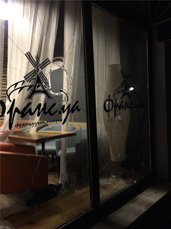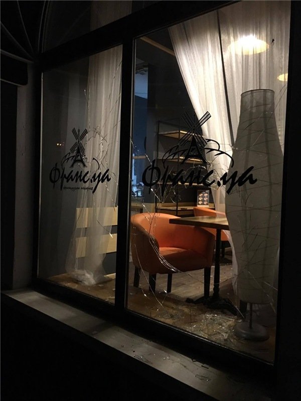 «Сьогодні о 5-й ранку від рук бандюків постраждали вінка кав’ярні “Франсуа” на бульварі Шевченка», - йдеться у повідомленні.