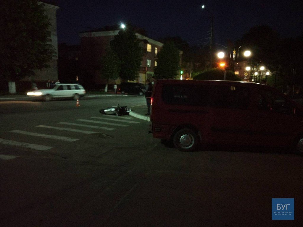 Як розповідають очевидці, скутер рухався по вулиці Святого Володимира та повертав біля пожежної площі, намагаючись обігнати автомобіль Фіат. Не впорався з керуванням та влетів у бордюр, передає БУГ.