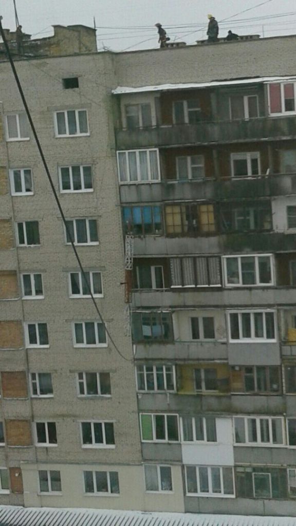 Металева конструкція заввишки до 10 метрів обірвалася внаслідок пориву сильного вітру. Частина вишки довжиною приблизно 4 метри зірвалася з даху дев’ятиповерхового будинку і повисла на тросі кріплення та кабелях на рівні сьомого поверху. Внаслідок цього у квартирі було вибито вікна та виникла загроза подальшого обвалення металевої конструкції.