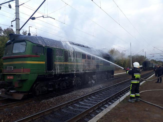 Пожежа виникла у тяговому двигуні тепловозу. Рятувальники її швидко загасили. Жертв та постраждалих немає.