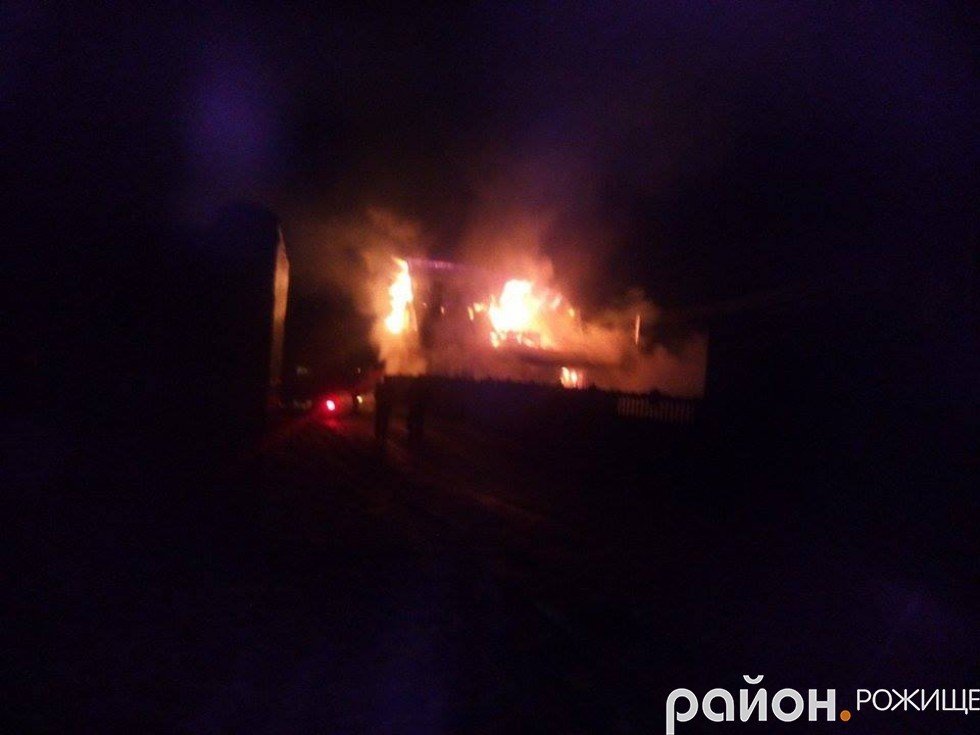 Як інформує «Район.Рожище», близько 20 години на вулиці Гагаріна, 44, спалахнув півтораповерховий будинок.