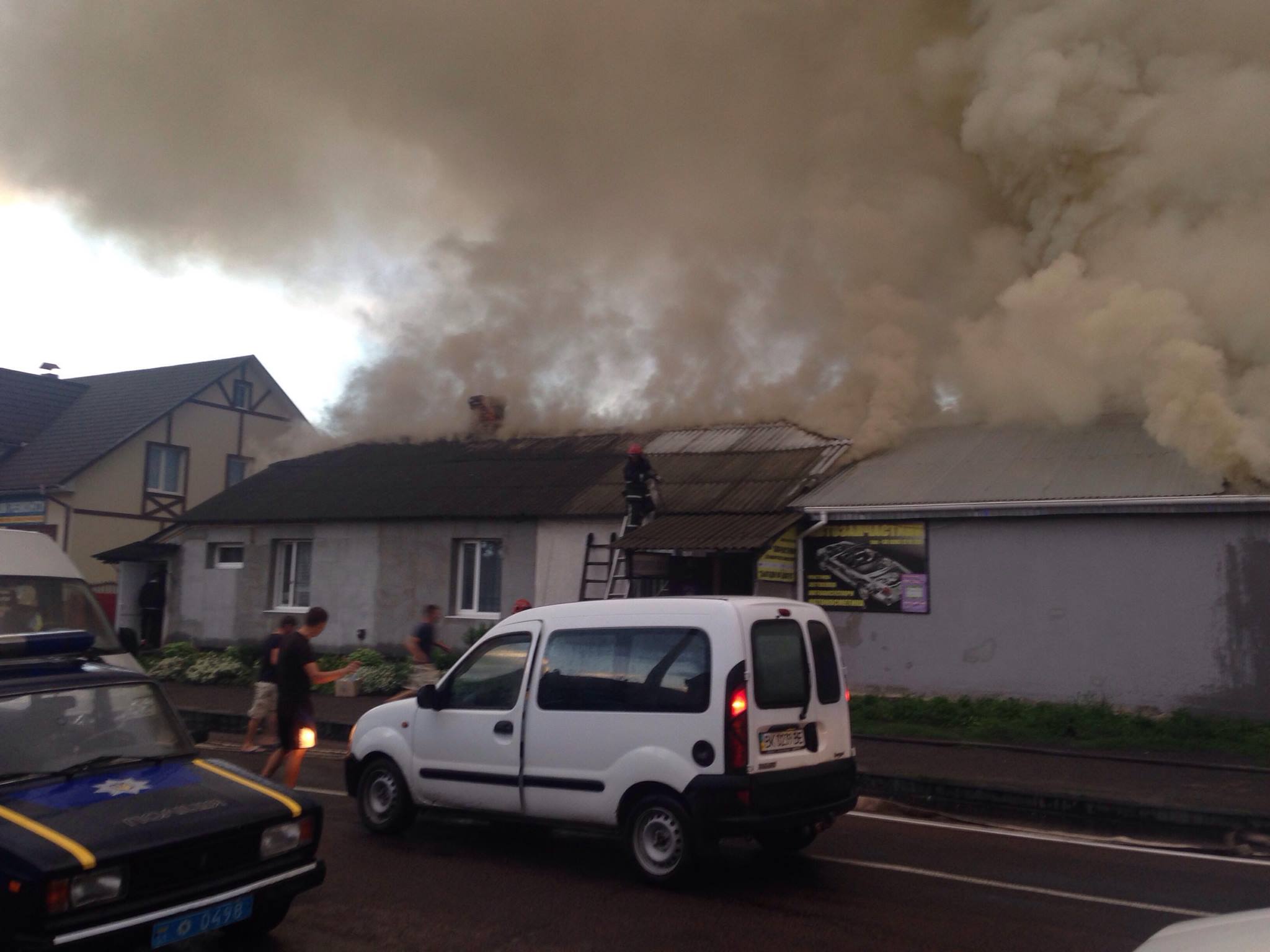 На місці працюють декілька пожежних машин та дві бригади швидкої допомоги.Відео з пожежі оприлюднив у Фейсбук Віктор Вавренчук.Як роблять припущення деякі очевидці, загоряння сталося внаслідок попадання блискави.