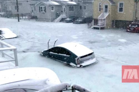 Жителі східного узбережжя США публікують в Інтернеті вражаючі відео та фото. На них можна побачити автомобілі поглинені льодом, заморожені дерева і вулиці, які перетворилися на крижані ріки. Катаклізм охопив всі штати розташовані на східному узбережжі США. Найважча ситуація у штатах: Мен, Нью-Гемпшир та Массачусетс. Саме тут сильний вітер створює величезні хвилі, які буквально затоплюють міста.