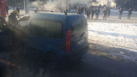 RENAULT Kangoo загорівся перед світлофором навпроти центрального універмагу.