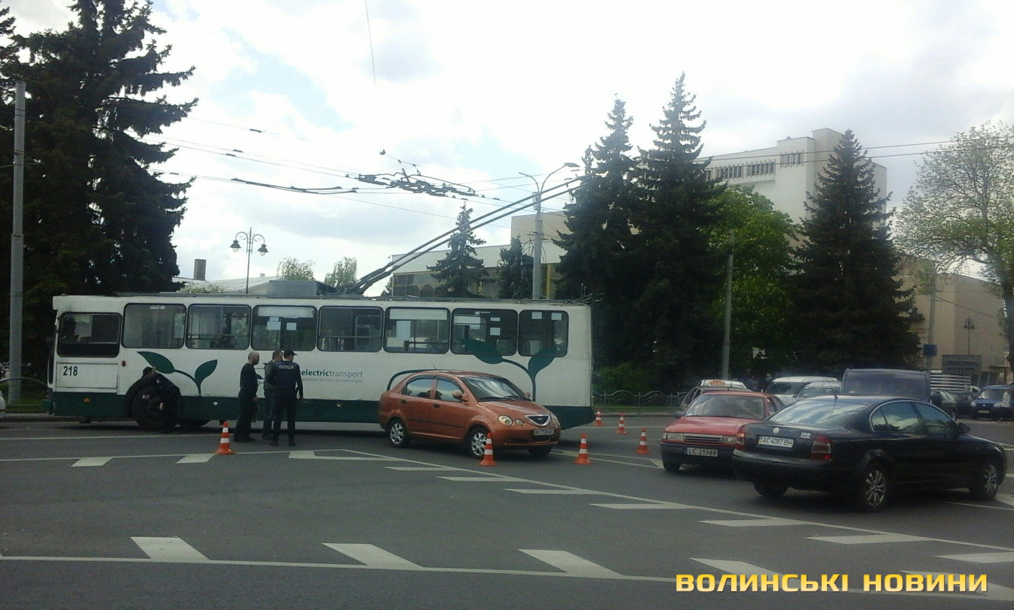 У центрі Луцька тролейбус зачепив авто і перегородив перехрестя. Фото