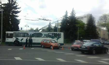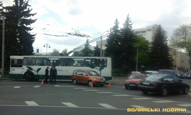 Тролейбус, який повертав із вулиці Винниченка на проспект Волі, зачепив легковик, який рухався у зворотньому напрямку. В результаті сталась ДТП, внаслідок якої транспортні засоби отримали незначні механічні ушкодження та утворився затор.